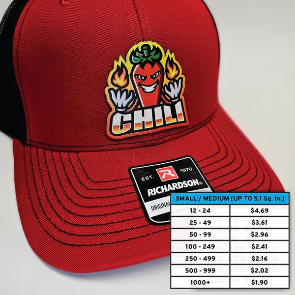 Example: 2.25" x 2.25" is 5 Sq. Inches (Don't exceed 2.25" Tall; this is too tall for most hats)